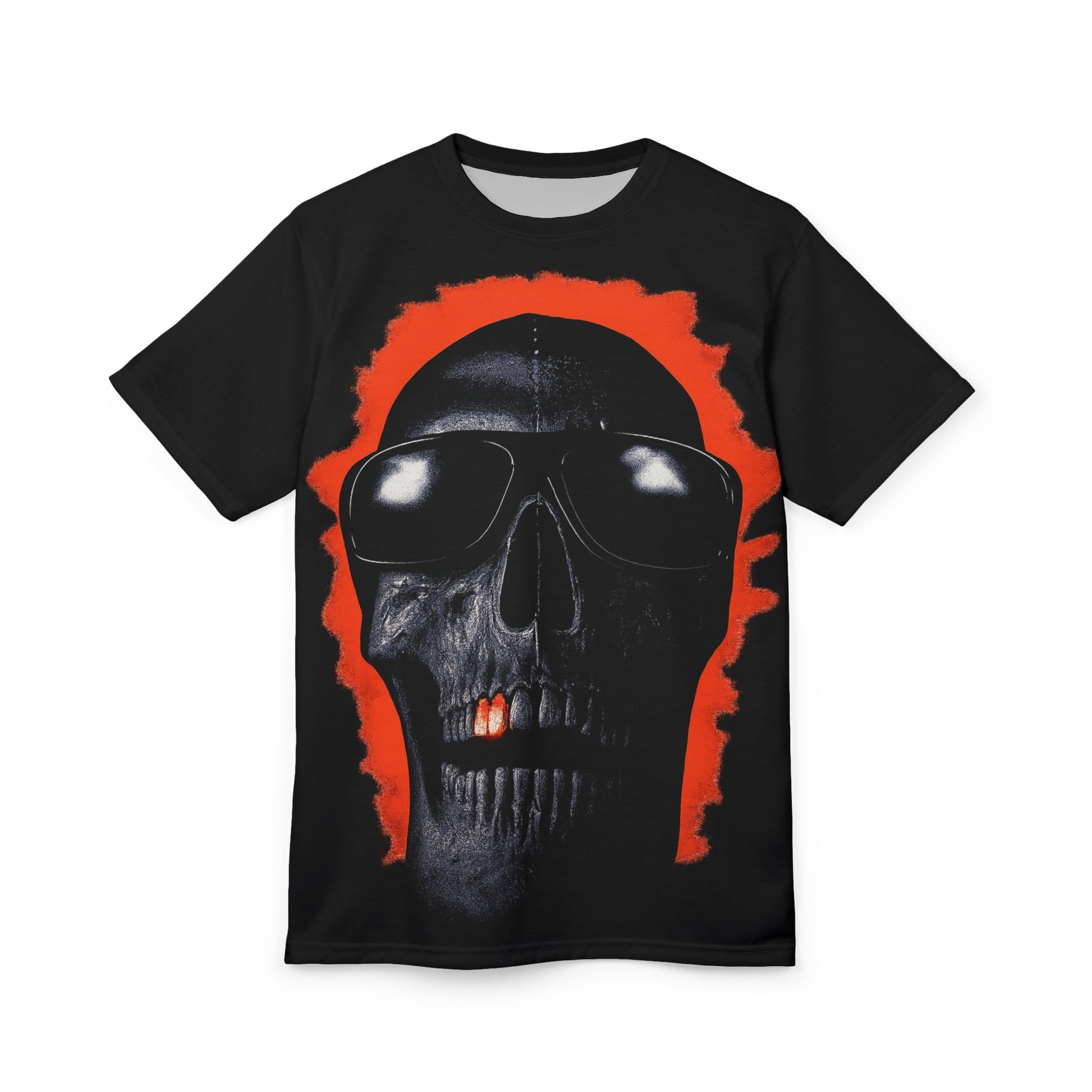 Step into the shadows with the Hoodreaper Tee. Featuring a chrome-detailed skull rocking shades and a fiery aura, this piece channels pure 90s grindhouse energy with a sinister urban twist.